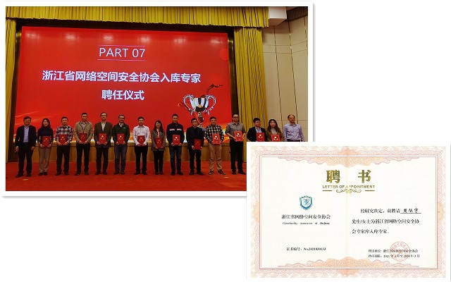 3月31日,由浙江省委網(wǎng)信辦指導、浙江省網(wǎng)絡(luò )空間安全協(xié)會(huì )主辦的“護航數字化改革網(wǎng)絡(luò )安全論壇”在杭州召開(kāi),來(lái)自黨政機關(guān)、關(guān)鍵信息基礎設施保護部門(mén)、高校、機構、網(wǎng)信企業(yè)等350余名嘉賓參加論壇,浙江省委網(wǎng)信辦副主任馬曉軍、浙江省大數據局處長(cháng)姜楚江、浙江省委信息化管理中心主任畢偉文等出席會(huì )議。會(huì )上,遠望信息副總裁周征宇作為浙江省網(wǎng)絡(luò )空間安全協(xié)會(huì )專(zhuān)家庫首批入庫專(zhuān)家獲頒聘書(shū)。