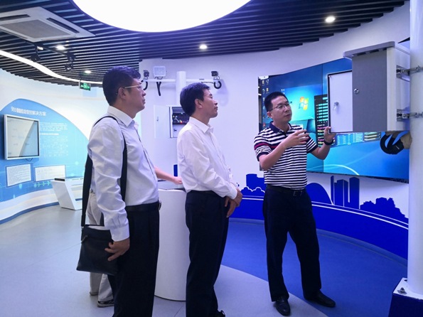 圖:遠望信息董事長(cháng)傅如毅(圖右)為張忠孝(圖中)、劉存信(圖左)講解遠望監控智能箱產(chǎn)品