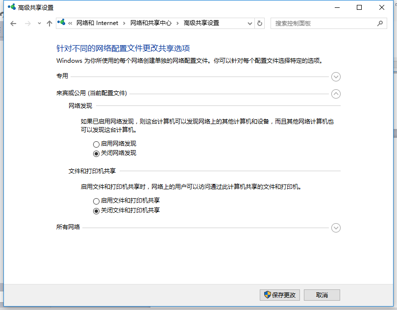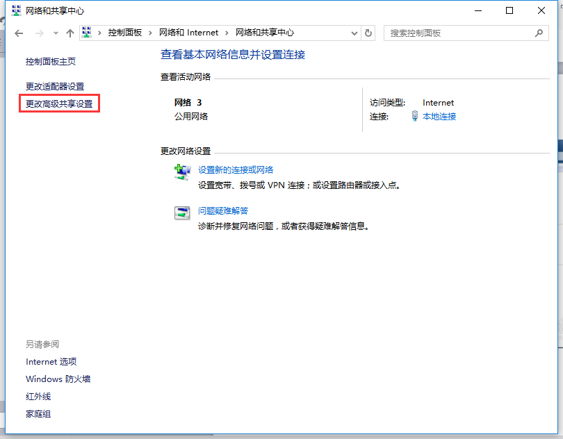 點(diǎn)擊更改高級共享設置