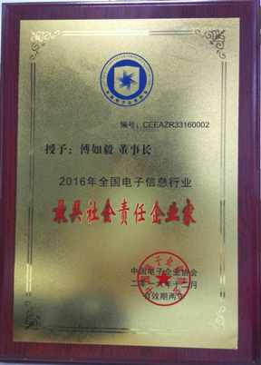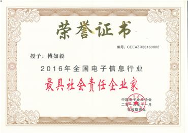 傅如毅榮膺2016全國電子信息行業(yè)最具社會(huì )責任企業(yè)家稱(chēng)號
