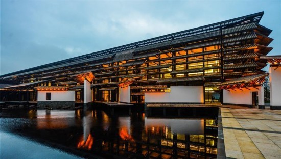 作為世界互聯(lián)網(wǎng)大會(huì )的永久會(huì )址,新建成的“烏鎮互聯(lián)網(wǎng)國際會(huì )展中心”由“普利茲克建筑獎”獲得者、中國美院教授王澍領(lǐng)銜設計,建筑面積8.1萬(wàn)平方米,由會(huì )議中心、接待中心和展覽中心三個(gè)功能區塊組成。建筑風(fēng)格注重傳統與現代的完美結合,特別是外立面上采用260萬(wàn)片江南小青瓦,5.1萬(wàn)根鋼索以網(wǎng)狀肌理寓意互聯(lián)網(wǎng),整體呈現江南古老建筑與現代網(wǎng)絡(luò )相融共生的和美場(chǎng)景,也和整個(gè)烏鎮形成富有生機的時(shí)代對話(huà)。