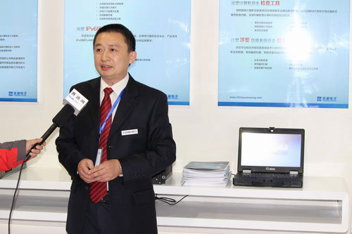 遠望電子有限公司市場(chǎng)部周征宇總經(jīng)理正在介紹公司產(chǎn)品