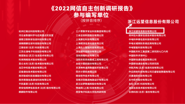 4月19日,網(wǎng)信自主創(chuàng )新調研報告編委會(huì )在“第六屆關(guān)鍵信息基礎設施自主安全創(chuàng )新論壇-暨紀念‘419’講話(huà)發(fā)表七周年活動(dòng)”上正式發(fā)布了《2022網(wǎng)信自主創(chuàng )新調研報告》。遠望信息作為安全防控體系構建領(lǐng)域的實(shí)力廠(chǎng)商參與編寫(xiě)了報告安全管控、數據安全等章節內容,得到編委會(huì )專(zhuān)家一致肯定,并獲致信感謝。
