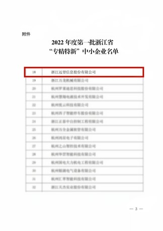 近日,浙江省經(jīng)濟和信息化廳公示了2022年度第一批浙江省“專(zhuān)精特新”中小企業(yè)名單。遠望信息憑借在政企網(wǎng)絡(luò )安全管理領(lǐng)域過(guò)硬的自主研發(fā)及創(chuàng )新能力成功入選。