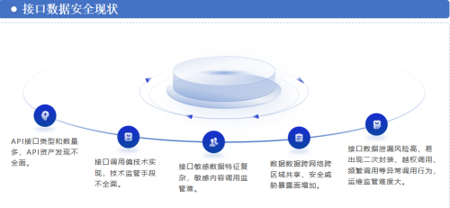 隨著(zhù)云計算、大數據、人工智能等技術(shù)的蓬勃發(fā)展,應用程序接口(API)作為數據傳輸流轉的重要通道發(fā)揮著(zhù)舉足輕重的作用。然而, API 技術(shù)在帶來(lái)積極作用的同時(shí),與其相關(guān)的數據安全問(wèn)題也日益凸顯;當前,接口數據安全存在著(zhù)資產(chǎn)未全面識別、API二次封裝、API二次轉發(fā)、跨網(wǎng)絡(luò )跨區域調用、API異常調用等系列亟待解決的痛點(diǎn)。